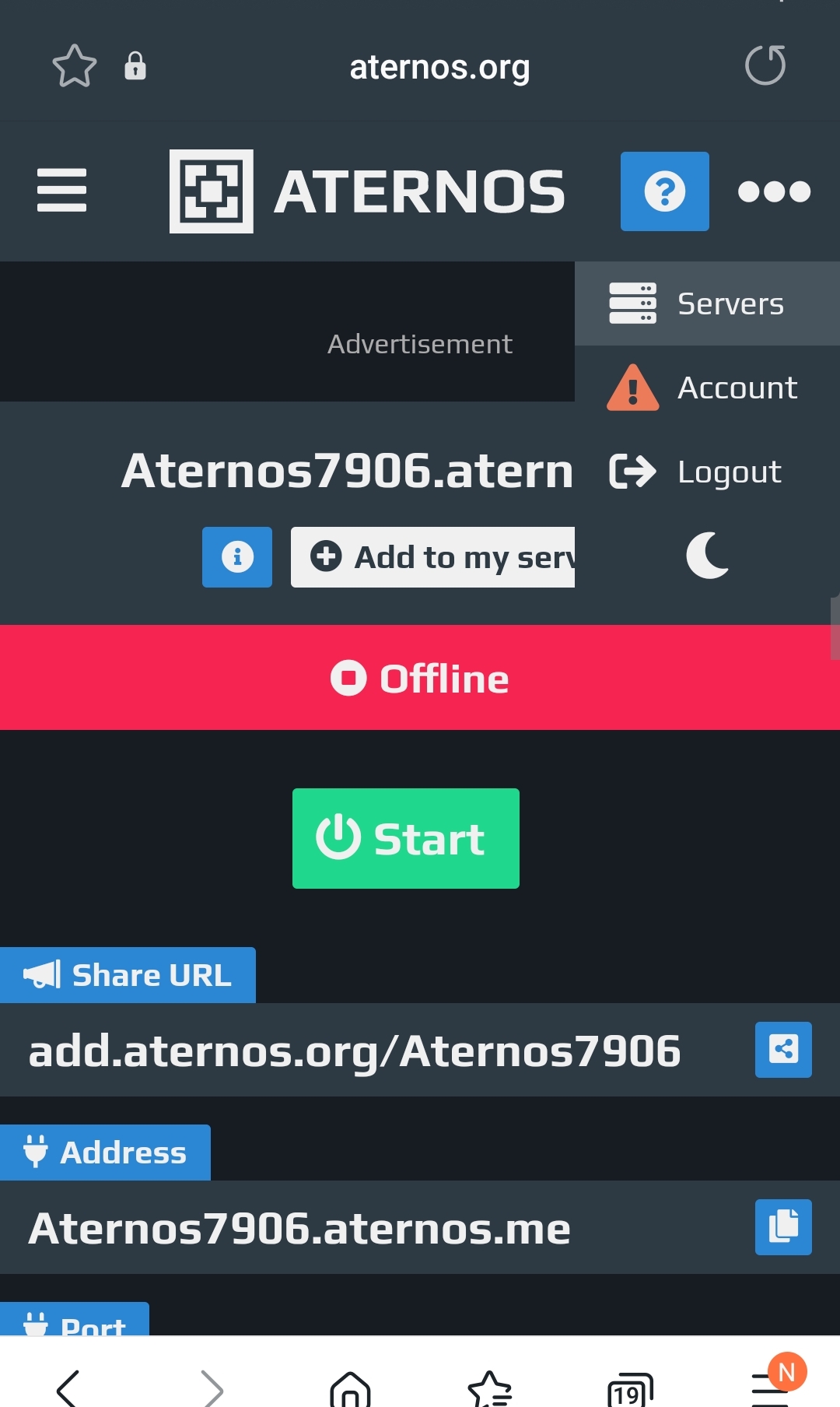 Using Aternos account